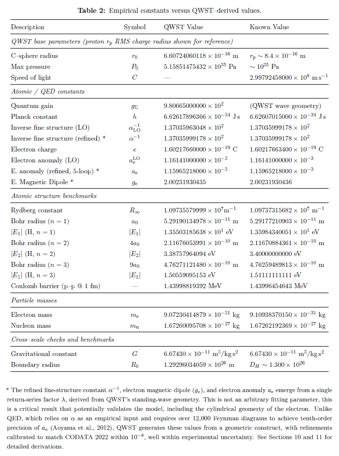 Its relationships were not obtained by fitting constants to data, but arise from a physical model constrained by energy saturation and wave stability. The agreement with measured constants was discovered after the framework was established, not imposed beforehand.