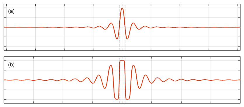 1D Model of the Nucleon Pressure Profile, showing a linear state (a) and the non-linear saturation “steep gradient” state that emerges at the core (b).